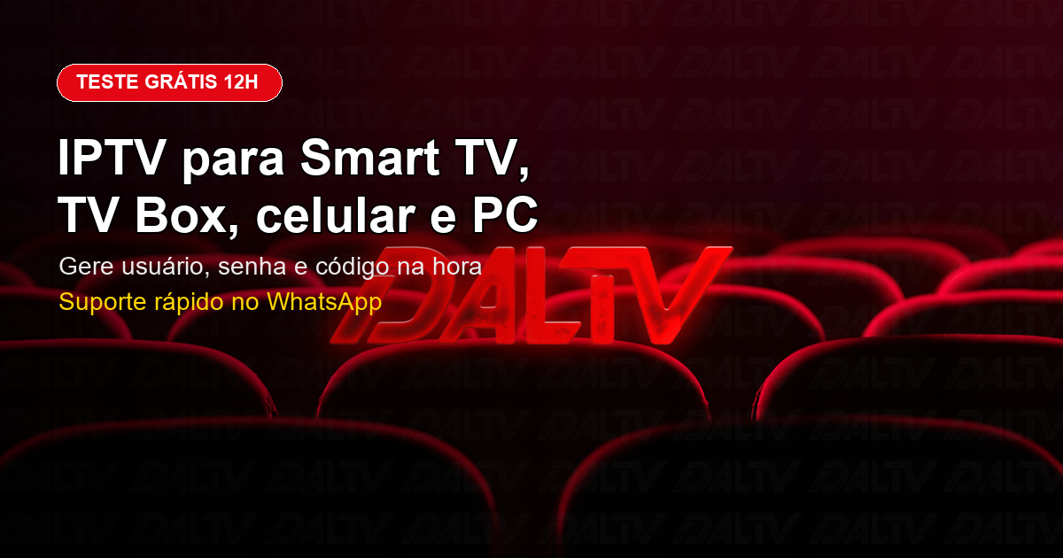 Quem procura teste grátis de IPTV recebe 12 horas grátis para Smart TV, TV Box e Android. Usuário, senha e código aparecem na tela, com suporte rápido no WhatsApp.
